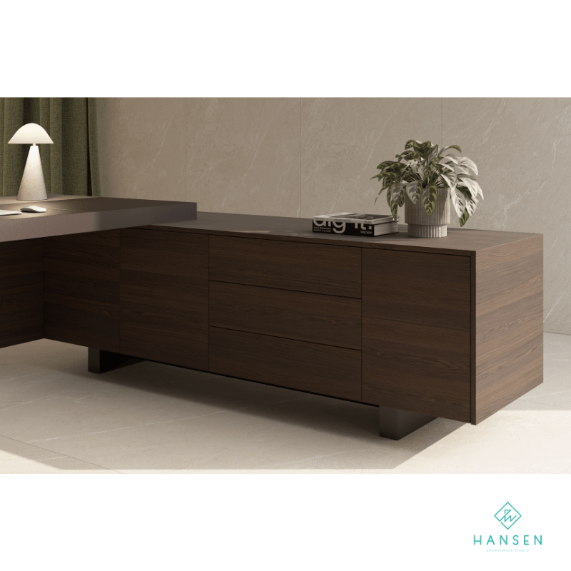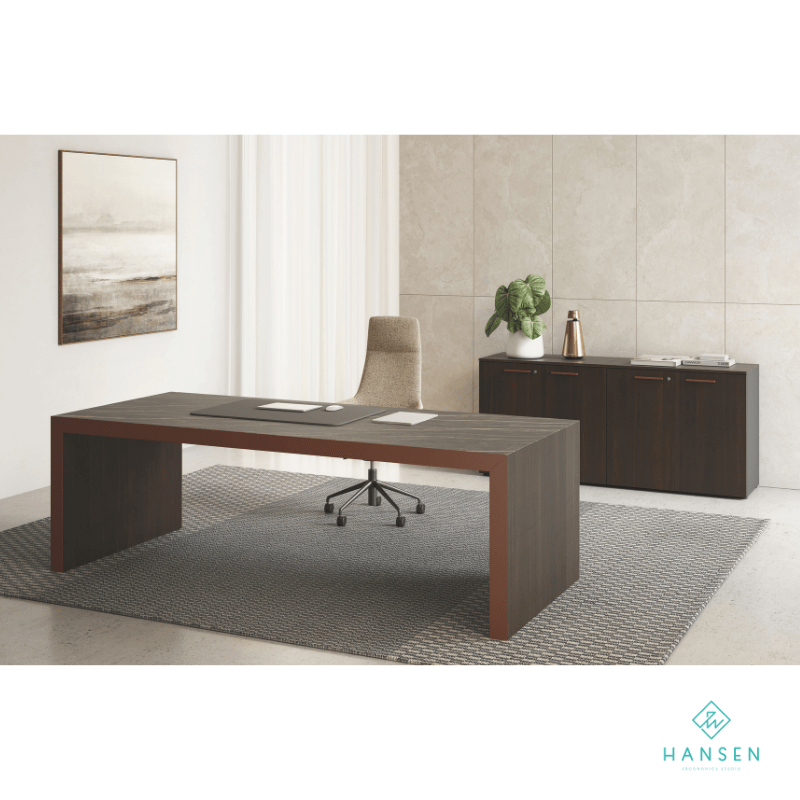 Biroul Executiv EN este alegerea ideală pentru spațiile manageriale care caută o estetică exclusivistă, dar curată, în care fiecare detaliu exprimă putere, stabilitate și rafinament.