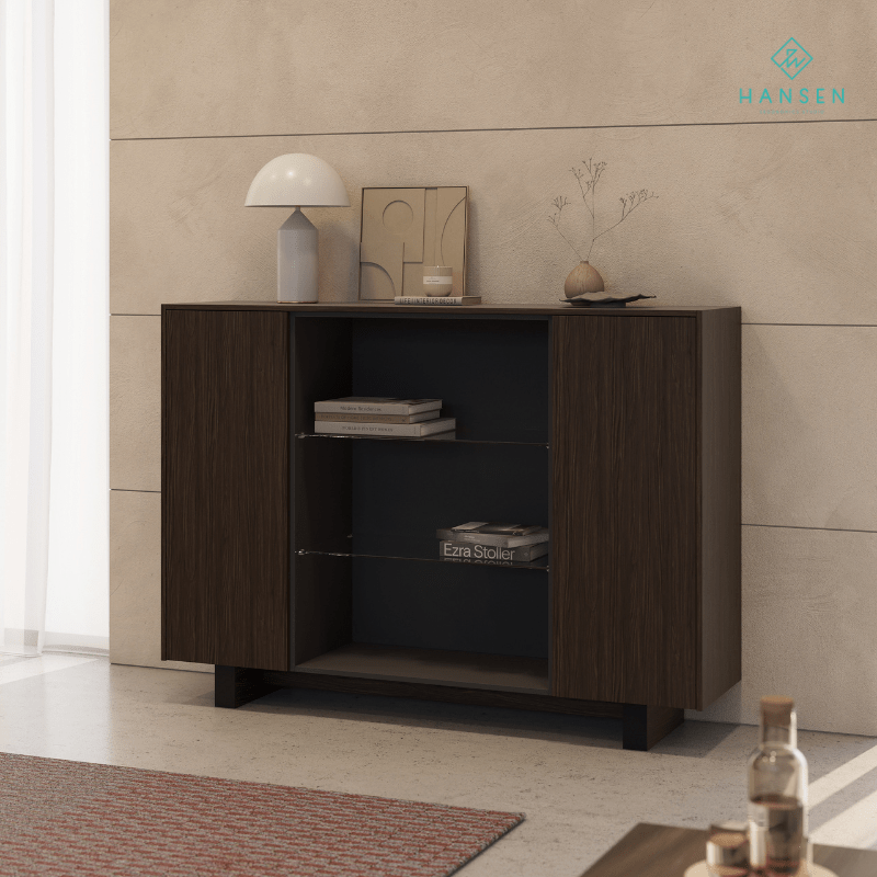Acesta poate avea si o extensie laterala cu 4 spatii de depozitare inchise, dintre care unul cu 3 sertare.