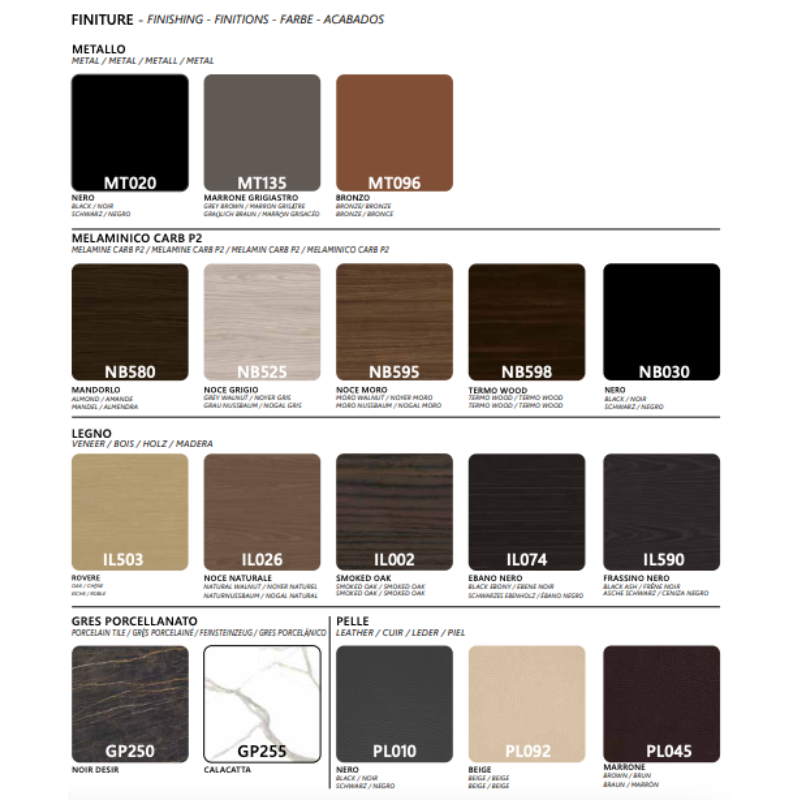 Biroul poate fi configurat în multiple variante de finisaj, oferind posibilități estetice variate, de la tonuri calde și organice până la combinații cu accente metalice contemporane.