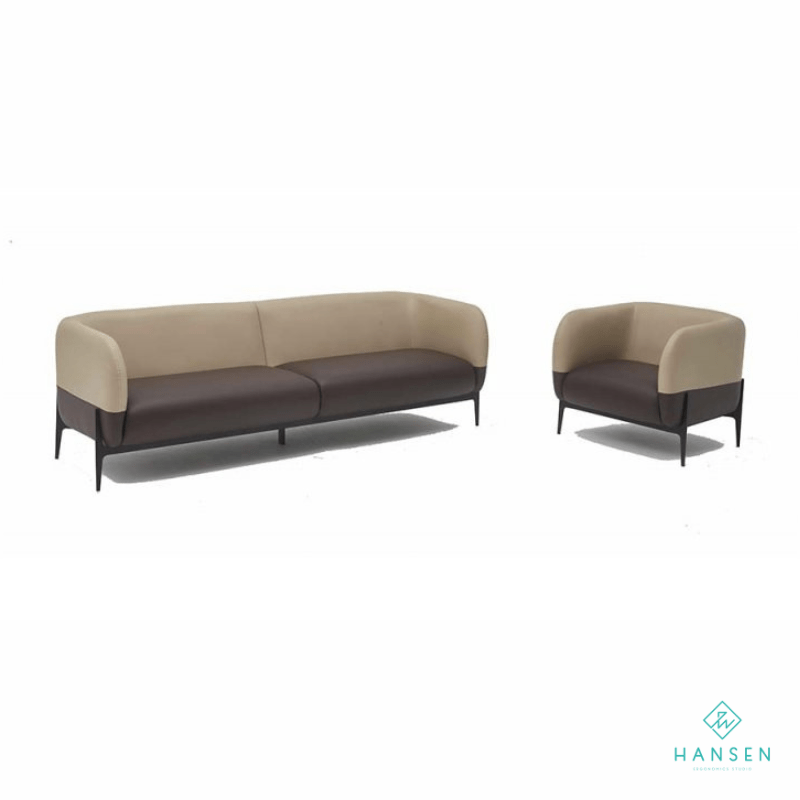 O notă distinctivă a Cover este posibilitatea de a combina două culori diferite pentru tapițerie, ceea ce permite crearea unui contrast armonios și jucăuș, potrivit atât pentru spații profesionale moderne, cât și pentru lounge-uri relaxante. Baza metalică solidă, cu picioare vopsite în câmp electrostatic negru, oferă stabilitate și un accent vizual contemporan, completând designul elegant și rafinat al canapelei.