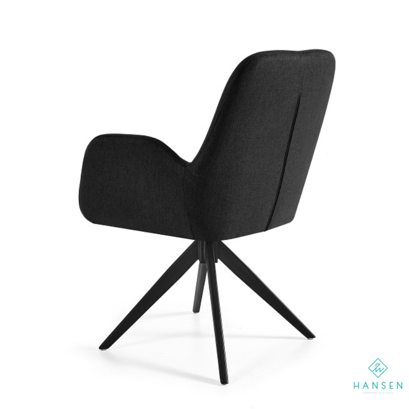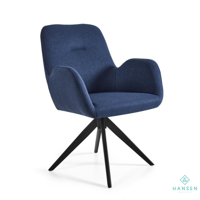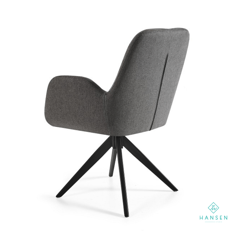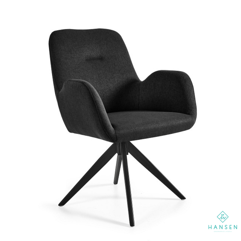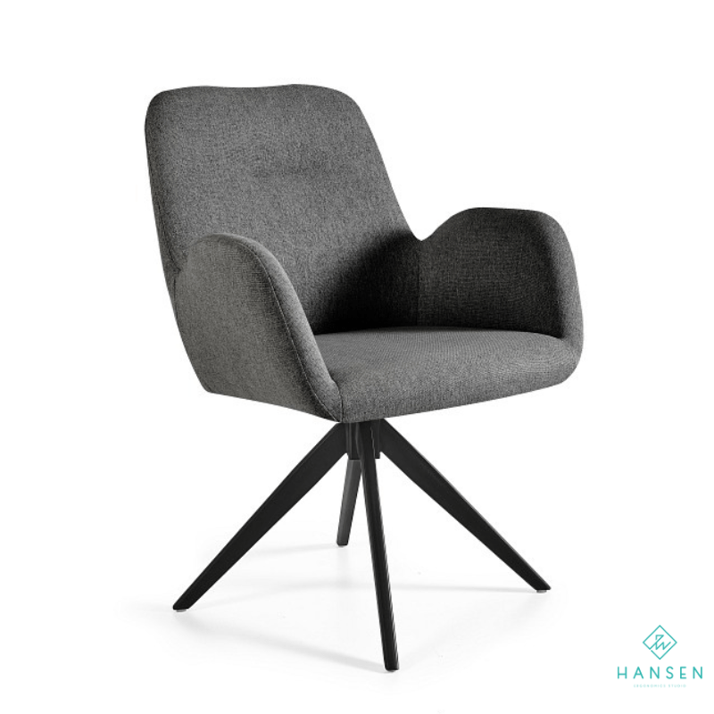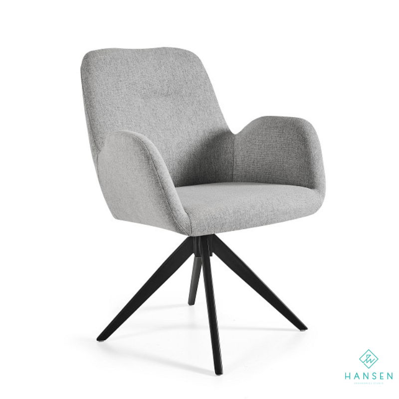 Tapiteria din material textil asigură un nivel optim de confort, fiind totodată rezistentă la uzură, cu 100.000 de cicluri Martindale, ceea ce garantează durabilitate îndelungată. Baza din aluminiu lacuit conferă stabilitate și un aspect elegant, susținând o greutate maximă de 130 kg.
