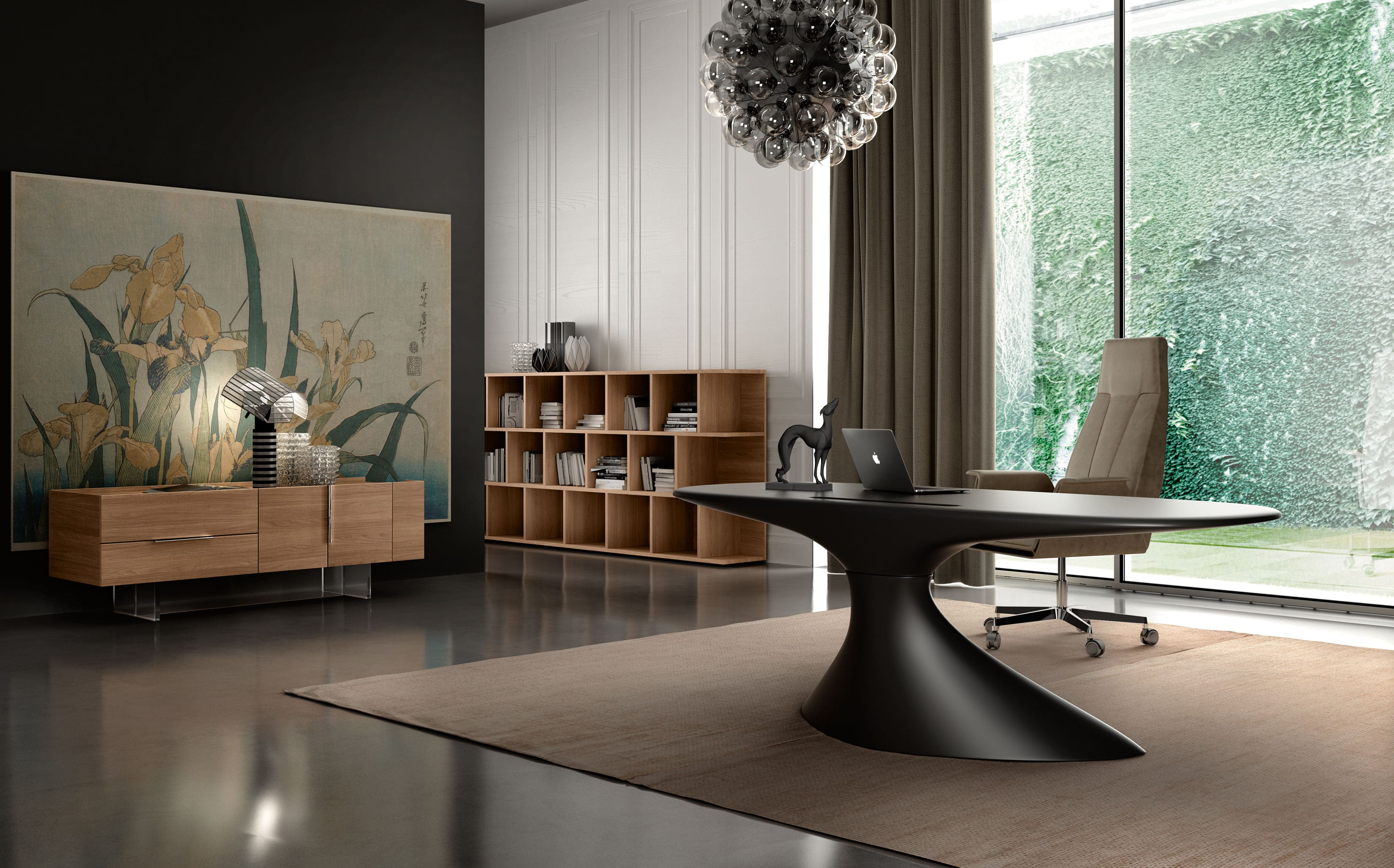 Designul și eleganța sunt trăsăturile acestui produs, care ies în evidență prin forme și inovatie tehnica, folosirea materialelor inovatoare care sunt neobișnuite pentru mobilierul de birou. Excelent pentru biroul de acasa, receptii de spatii publice, hoteluri, magazine sau galerii.