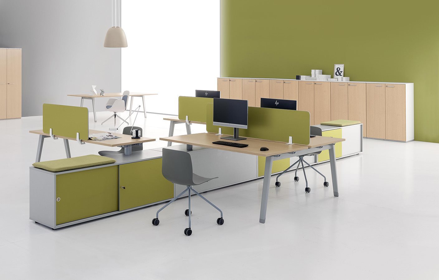 Noi soluții de mobilier pentru stații de lucru. Versatilă, proaspătă și funcțională, o gamă cu un sistem de asamblare extrem de ușor. Această serie oferă în totalitate spații operative și executive, în conformitate cu evoluțiile de astăzi. Luminozitatea și stilul formal sunt principalele ingrediente ale acestei game.