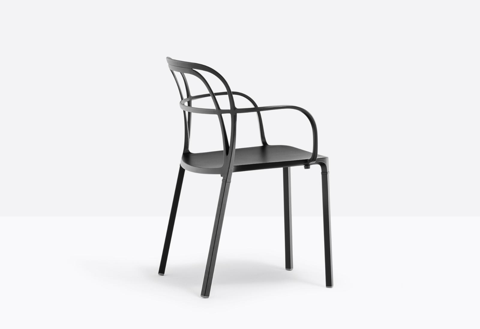 O combinație de linii care se răsucesc armonios, creând o siluetă implicită și minimalistă. Caracteristica principală este reprezentată de turnarea sub presiune a aluminiului care creează secțiuni diferite pentru spătar, cotiere și picioare.