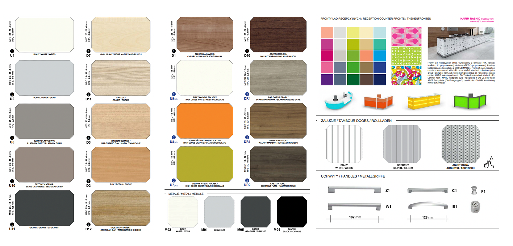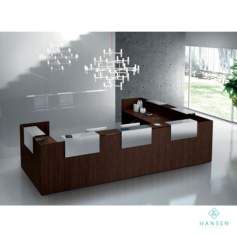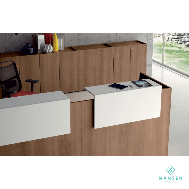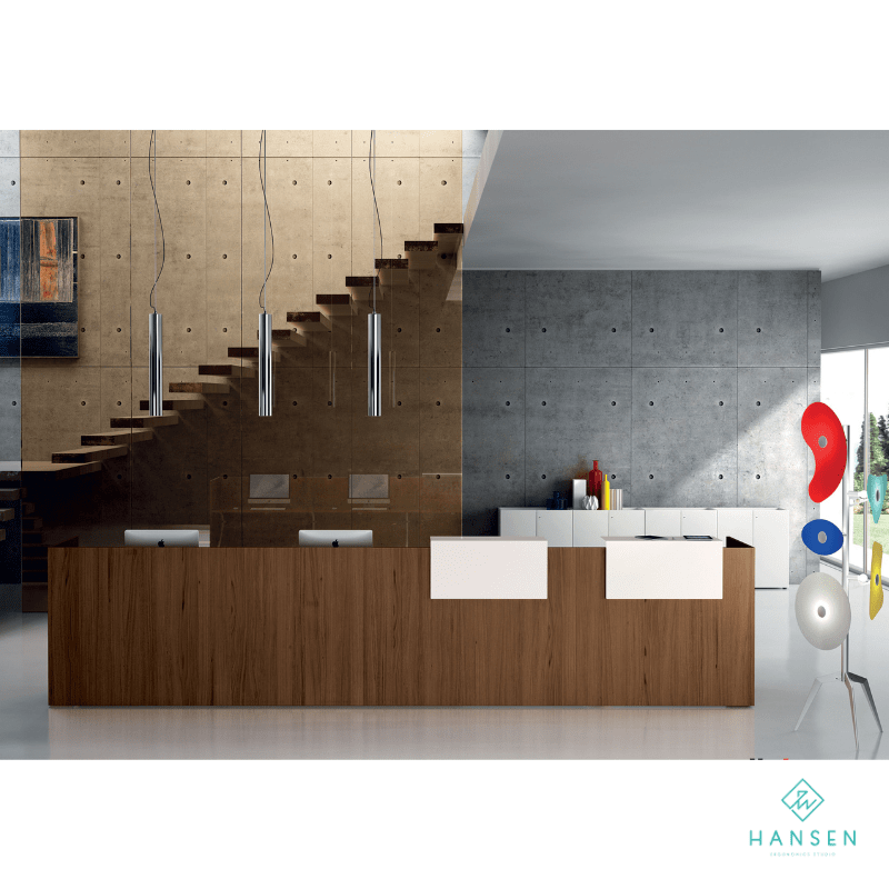 Receptia este formata din corpuri modulare de 90 sau 120 cm cu profunzimea de 70 cm.