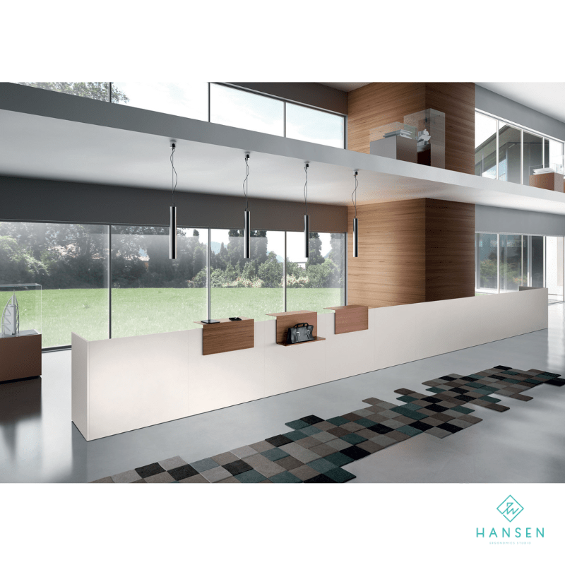 Receptia Lithos completeaza colectia de mobilier de birouri Della Rovere oferind o nota distincta de eleganta si design.