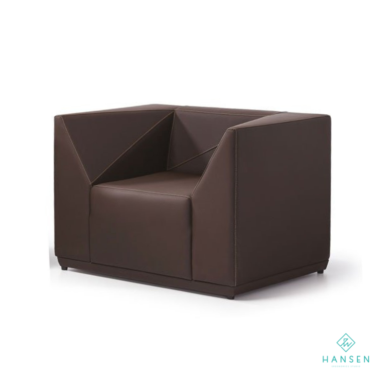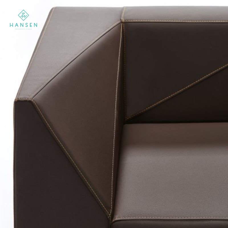 · Design Spătar/Cotiere: Spătarul și cotierele sunt integrate perfect, formând un corp monolit. Acestea prezintă un design fațetat, inspirat de forme prismatice, creând un efect vizual tridimensional.